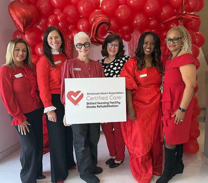 RED ALERT -- Celebrating National Wear Red Day at the Alexandria Rehabilitation Center Feb. 6 are Nora Sanchez, Donna Shaw, Jane Hughes, Michelle Burnette, Udy Ekong and Josephine Tarawallie. National Wear Red Day is part of American Heart Month and aims to highlight the importance of heart health, especially for women, who are disproportionately affected by cardiovascular diseases. The day encourages individuals to wear red as a symbol of support and to spark conversations about heart health and prevention strategies.